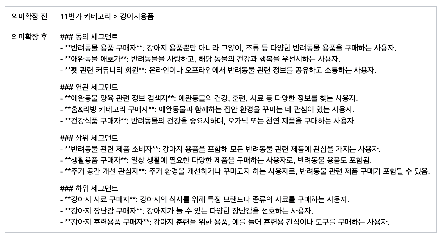 예를 들어, LLM을 통해 아래와 같은 확장 키워드를 자동 생성합니다.