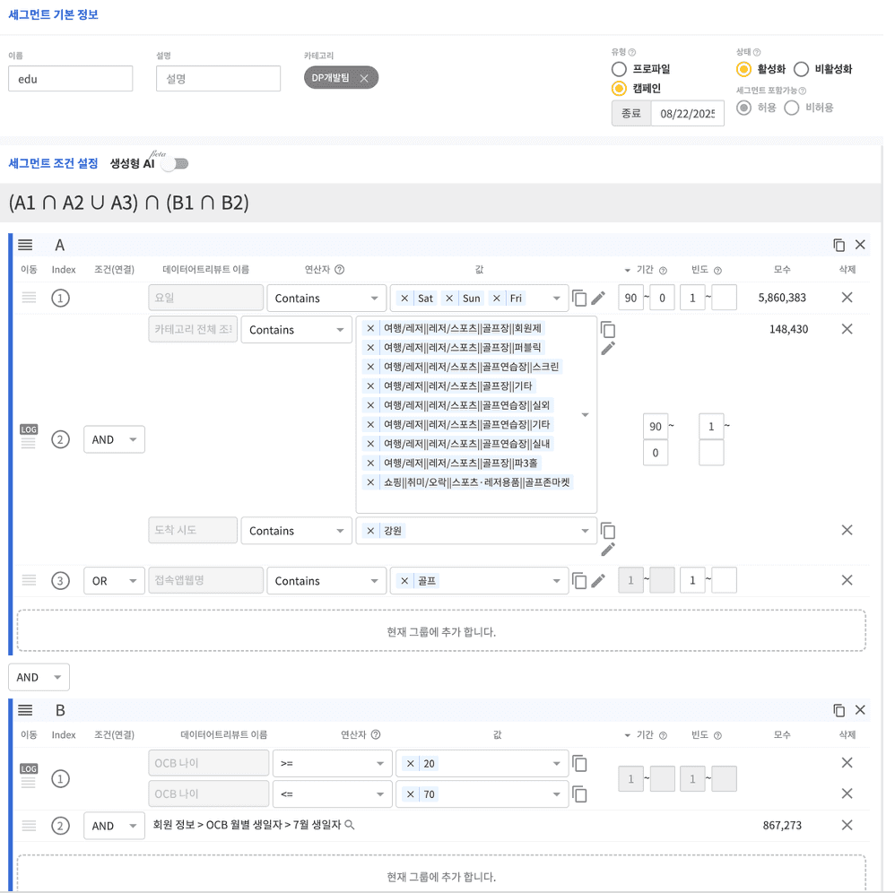 세그먼트 조건을 수동으로 설정해야 했으므로, 심지어 한 번의 세그먼트 생성에 평균 2~3시간이 소요되기도 했습니다. 그만큼 휴먼 에러 발생 가능성도 높았습니다.
