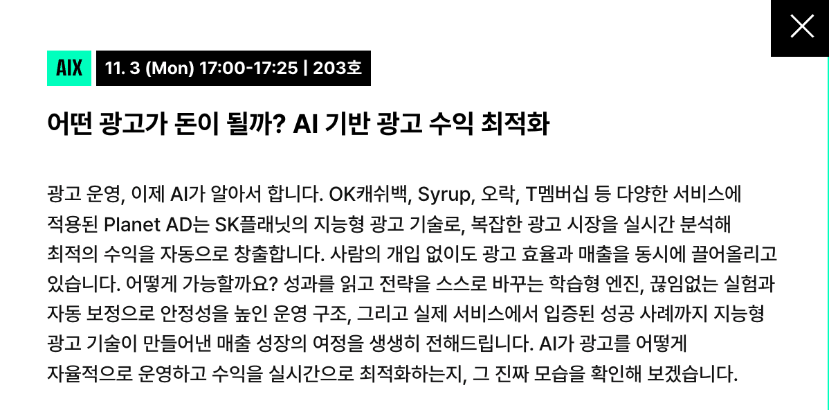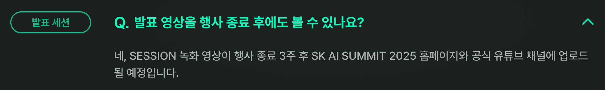 - 참고: 예전에는 'SK Tech SUMMIT'이었음(2024년부터 AI SUMMIT으로 변경했고 장소도 워커힐 -> 코엑스로 변경)