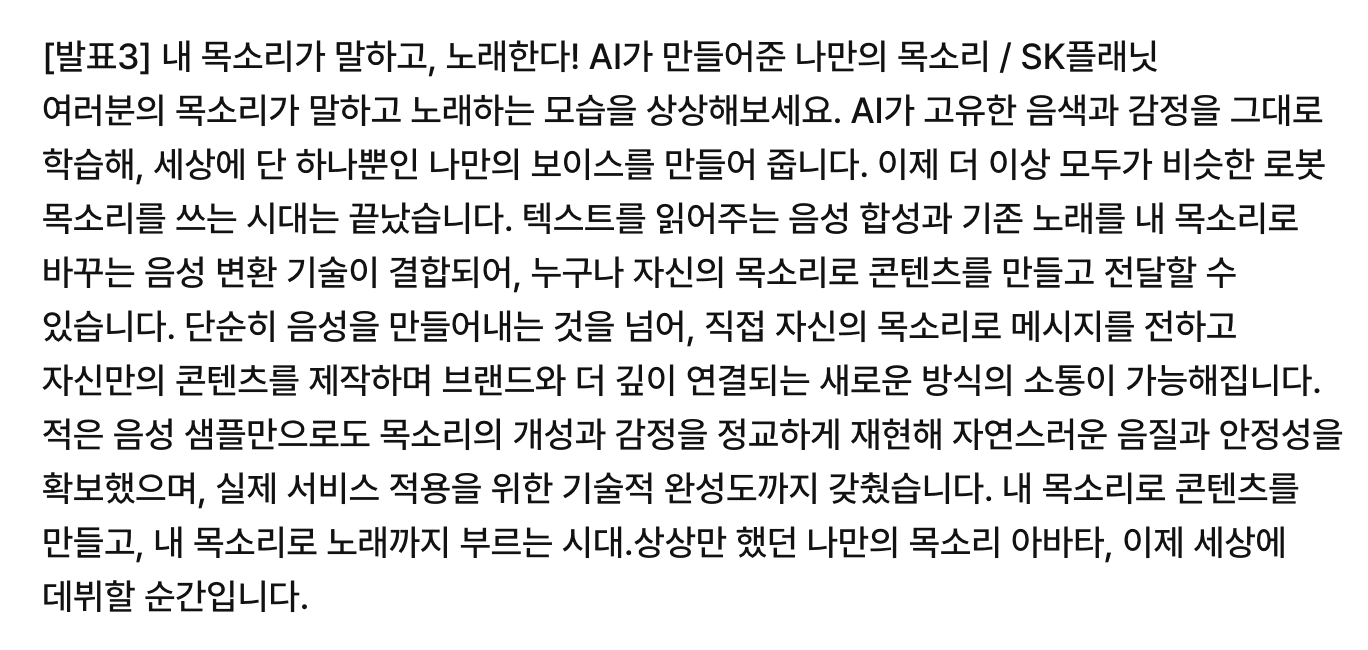 SK플래닛은 2025년에 2건의 AI 주제를 발표합니다 (텔레콤, 하이닉스 외에는 1건 발표도 어려운데 음...)