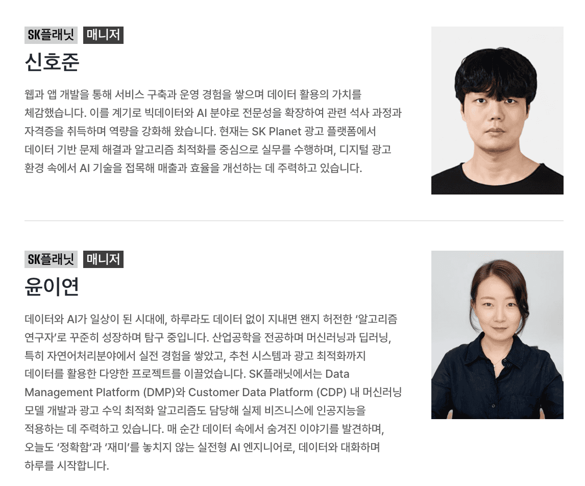 - 소속/발표자: 데이터서비스개발팀 신호준 매니저, AI서비스개발팀 윤이연 매니저