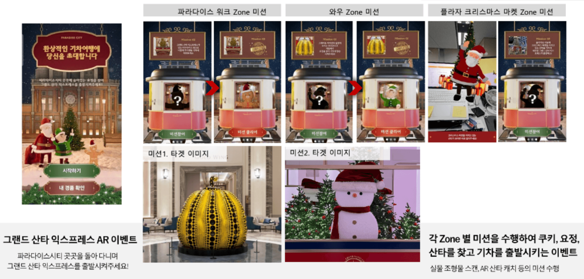 GPS 기반으로 특정 위치를 안내하고, 해당 위치에 도달하면 AR 콘텐츠가 활성화되어 혜택을 제공하는 방식입니다.