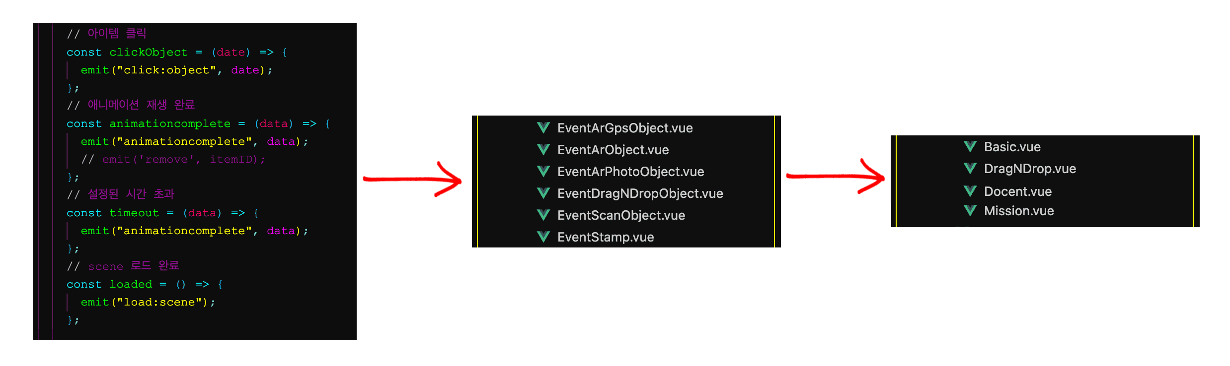 - 페이지의 전환 없이 AR 콘텐츠를 빠르게 로드할 수 있도록 SPA 구조로 설계하고, 컴포넌트 기반 구현을 통해 AR 콘텐츠를 컴포넌트 단위로 분리하여 필요한 부분만 로드하고 렌더링하도록 최적화 하였습니다.