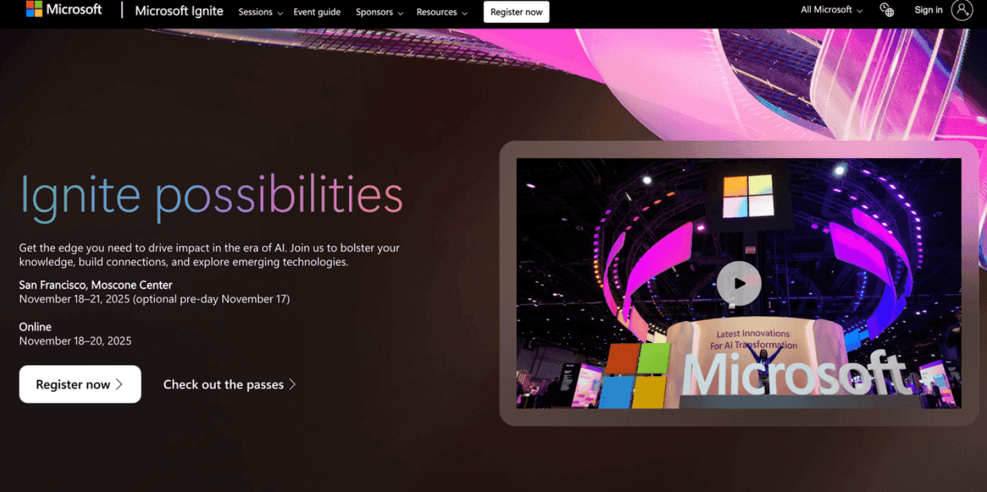 - 링크/신청: https://ignite.microsoft.com/en-US/home (신청)